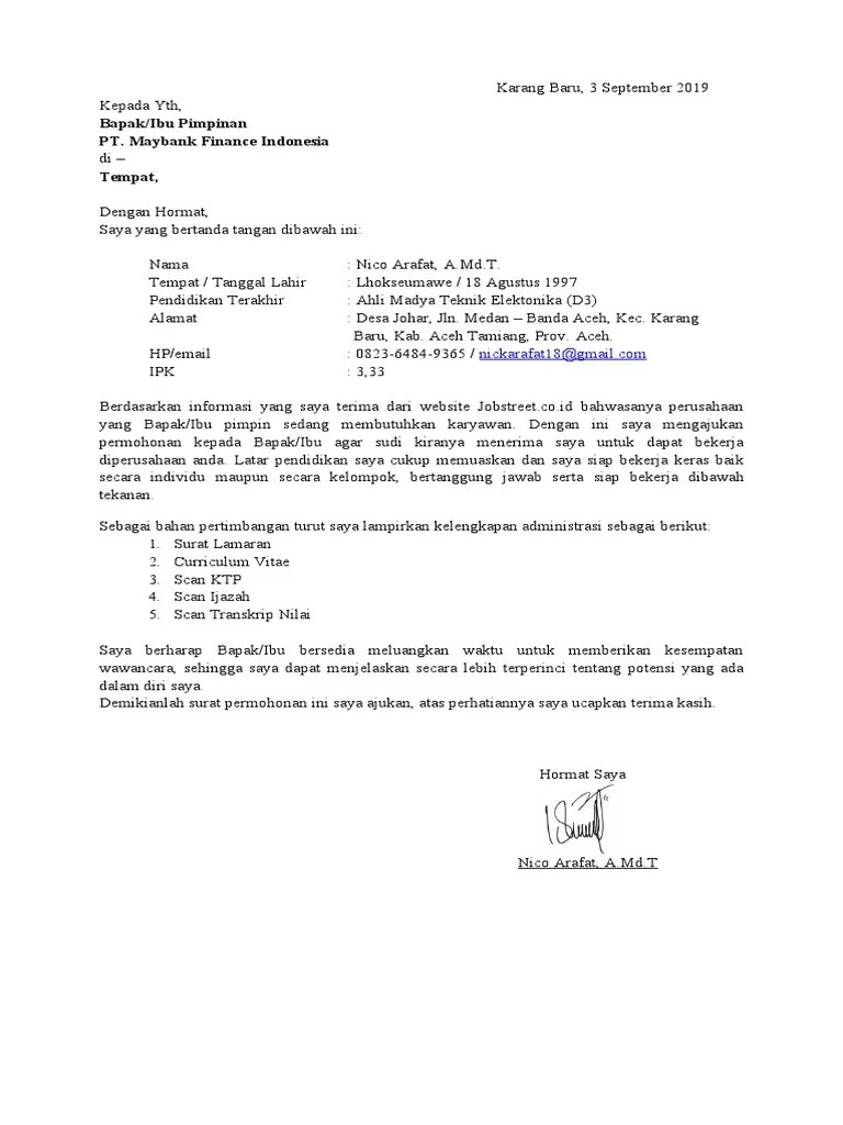 Saya menerima puluhan telepon dan email untuk mengatur janji temu klien setiap harinya. Saya doakan agar mendapatkan posisi yang tepat sesuai . Karena lewat internet, maka berbagai berkas penting yang diminta perusahaan haruslah dalam format digital, baik berupa dokumen pdf, word, . Contoh surat lamaran kerja via email.doc. Dilengkapi file doc dan tips agar . File pdf merupakan salah satu jenis file yang sering digunakan oleh kebanyakan orang untuk berbagai keperluan, salah satunya ialah untuk melamar kerja . Cukup melamar kerja melalui email tanpa perlu repot menyiapkan dokumen, materai dan perangko, surat lamaran kerja sudah dapat diterima oleh . Menganggap surat lamaran kerja via email hanya. Berikut adalah contoh surat lamaran kerja di ✓ pt, ✓ bank, ✓ guru, ✓ restoran, ✓ akuntan, dll. Rubah file menjadi format pdf.